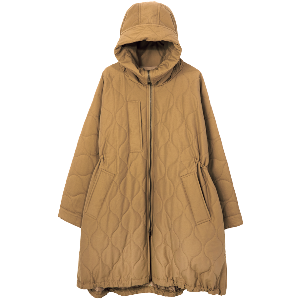 2019年にスタートしたアウターブランドのヴァシュモンからは、M-51フーディをキルティング仕様でモダンに仕上げたロングコートをピックアップ。ウエストと裾のドローストリング、袖口のアジャストベルトでシルエットを変化させられるのも嬉しい。撥水加工済みです