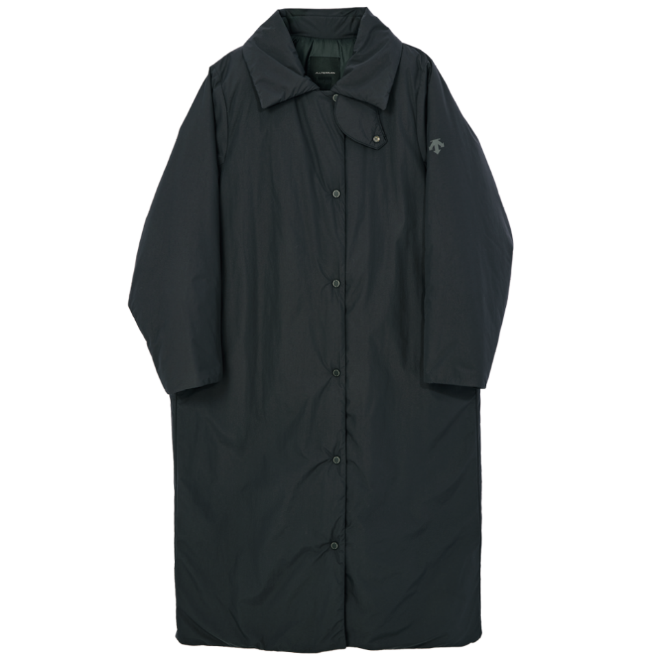 「通勤などに便利なステンカラーパフコートは、アウトドアからデイリーまで対応できるユーティリティアウトドアスポーツウェアブランド、デサントオルテラインの別注アイテム。抜群の保温性と軽量性はもちろんのこと、襟元はスタンドカラーにアレンジ可能で、冷気の侵入もしっかり防いでくれます」