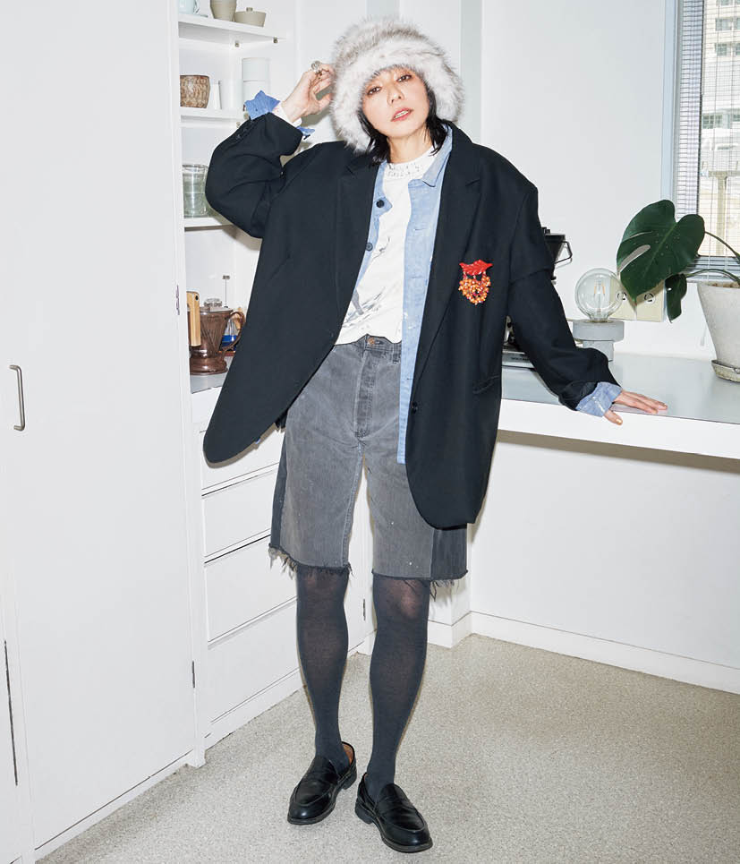 「増殖中のセントマイケルの服は、古着以上に古着っぽい加工で、長年愛用するワードローブともすんなりなじむから着やすいの。ハーフパンツ×タイツのバランス感が、新しさもあって今の自分にしっくり」