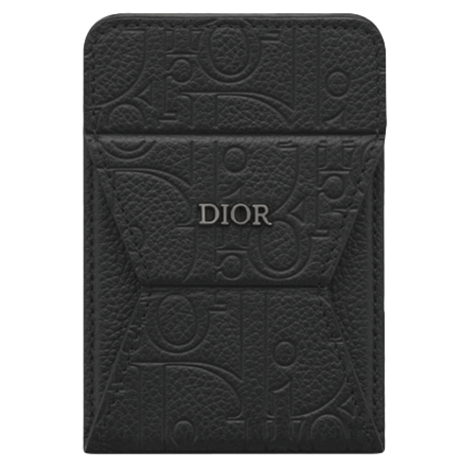 エンボス加工で「ディオール オブリーク」モチーフを配したカードホルダーは、スタンドにもなる優秀な一点。