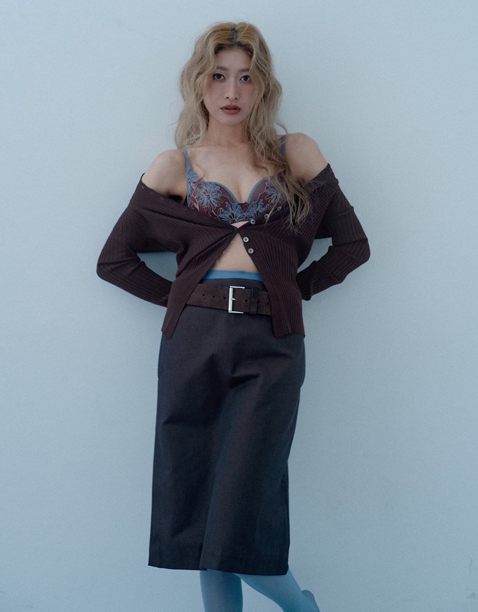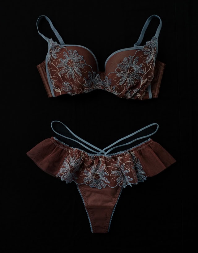 ファッションのように下着を楽しんでほしいという気持ちを込めて、コラボカラーは2色とも2026年春夏トレンドカラーを意識。コレクションのランウェイでも多数登場していた注目色モカブラウンを、ダスティブルーと組み合わせることで、洗練されたパリシックなムードに。高級感のあるモードなカラーリングが魅力です。カップに内蔵された伸縮性のあるやわらかいシートが伸縮し、バストが左右に広がるのを防いでくれるので、キレイなまるみのある谷間をメイク♡ ペアショーツはノーマルとTバックの2デザインあるのでお好みで