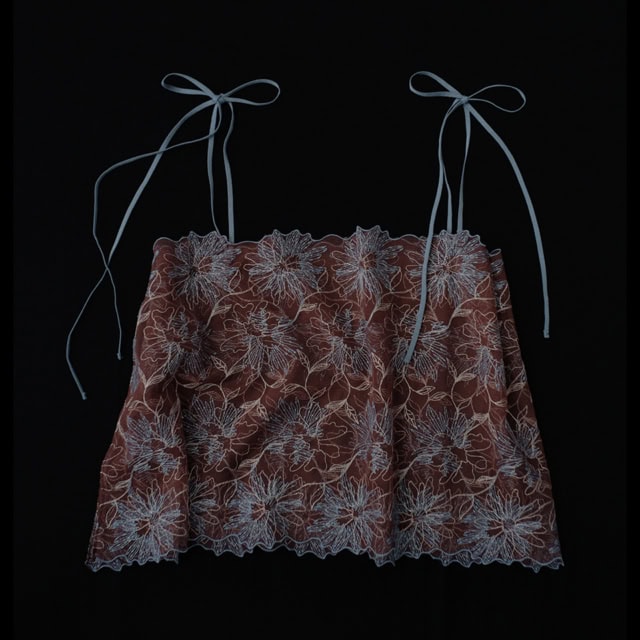 巻き方次第で自由自在なスタイリングが決まるレースのマルチウェイスカーフも作りました。コラボのブラと同じ、アクセントカラーのテープ使いがポイントです。タートルネックニットやシャツの上に重ねレースキャミとして、デニムやブラックパンツの上から腰に巻いてスタイリングをワンランクアップさせるポイントアイテムとして、ヘアアクセとして頭に巻いてみたりなど、1枚あるといろいろ便利!