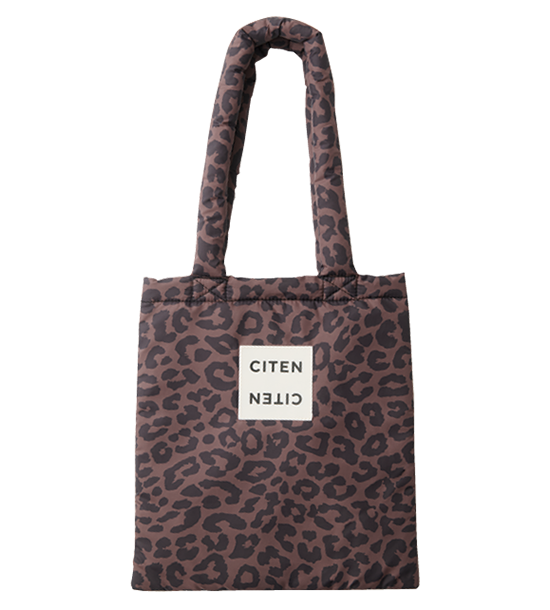 CITENの人気モデルをベースに、スタイリスト金子綾さんとのスペシャルコラボで誕生したパフィトート。トレンドのレオパード柄ですが、「気になるけど、派手過ぎる?」という人でも気負わず持てるもの、にこだわって作りました。