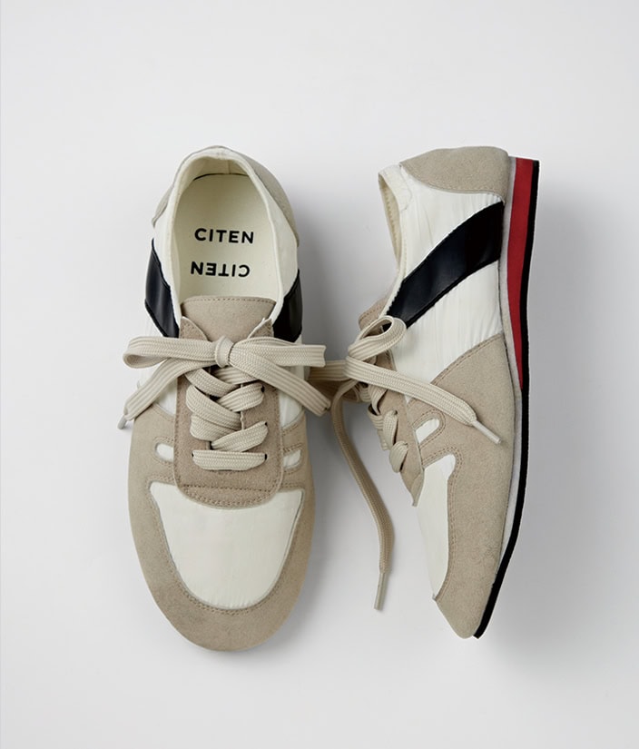 バッグだけでなく、実はシューズも揃っているシテン。トレンドのレトロクラシックなローテクモデルは、着こなしを選ばず、どんなシーンでも活躍してくれそう。スニーカー¥5,940※仕様変更の可能性あり(シテン/ユナイテッドアローズ カスタマーサービスデスク)
