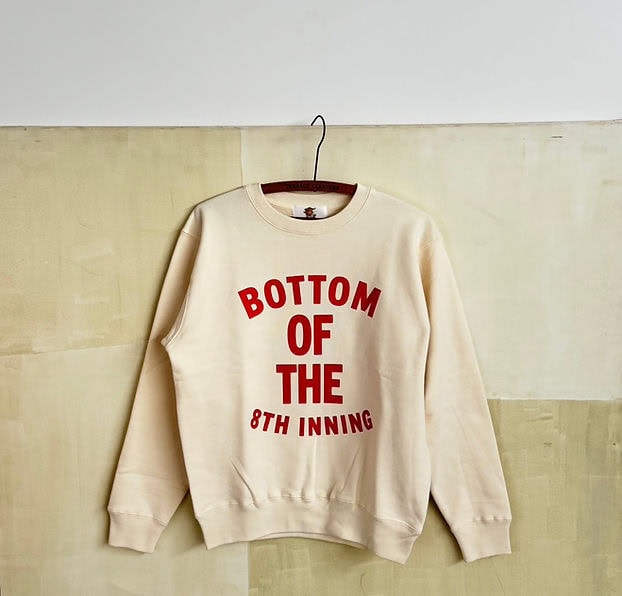 広島出身で東京在住、広島と野球をこよなく愛する2人のクリエイターが立ち上げたプロジェクト「HIROSHIMA LOVERS CLUB」。その記念すべき企画の第一弾として作られたのは「BOTTOM OF THE 8TH INNING」という真っ赤なプリントが目を引くスエット。