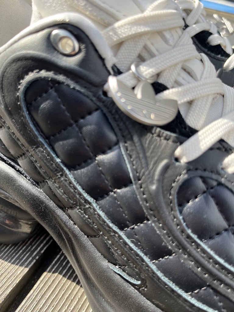 スポーツブランドでレザーのキルティングを使ったスニーカーって、かなり珍しいですよね。黒単色ではなく、部分的に白を効かせているので重くなりすぎないですし、ボリュームがありながらも抜け感ある足元が手に入れられるはず!
