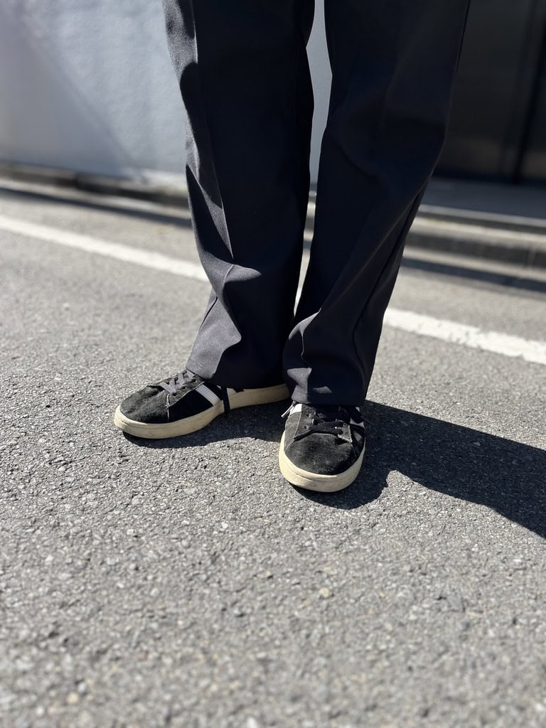 ジャケットはスニーカーで外して、ミスマッチ感を楽しむのがお決まりだそう