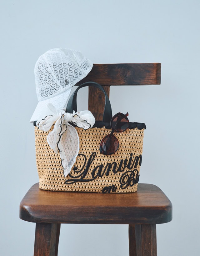 ブラックのロゴ刺繍とグログランテープがポイントになったかごバッグは、ショルダーストラップ付きでデイリーに最適。バッグに結んだストールは、ヨンアのようにヘアアレンジに取り入れるのはもちろん、首元の日よけとして使ったりとアレンジ自在。ラフなキャップもレース素材を選べば、ほどよくフェミニンなニュアンスをプラスできます。洒落感と機能性を兼ね備えたサングラスも、これからの季節の必需アイテム。