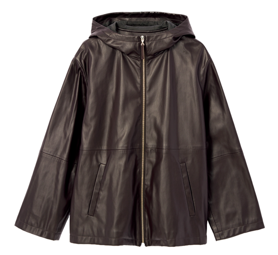 伸縮性のある合成皮革を使用し、しなやかな質感と上品なツヤを実現。リアルレザーよりも軽く、ストレスなく着られるのも嬉しいポイント。レザーライクパーカ¥35,200(サロン アダム エ ロペ)