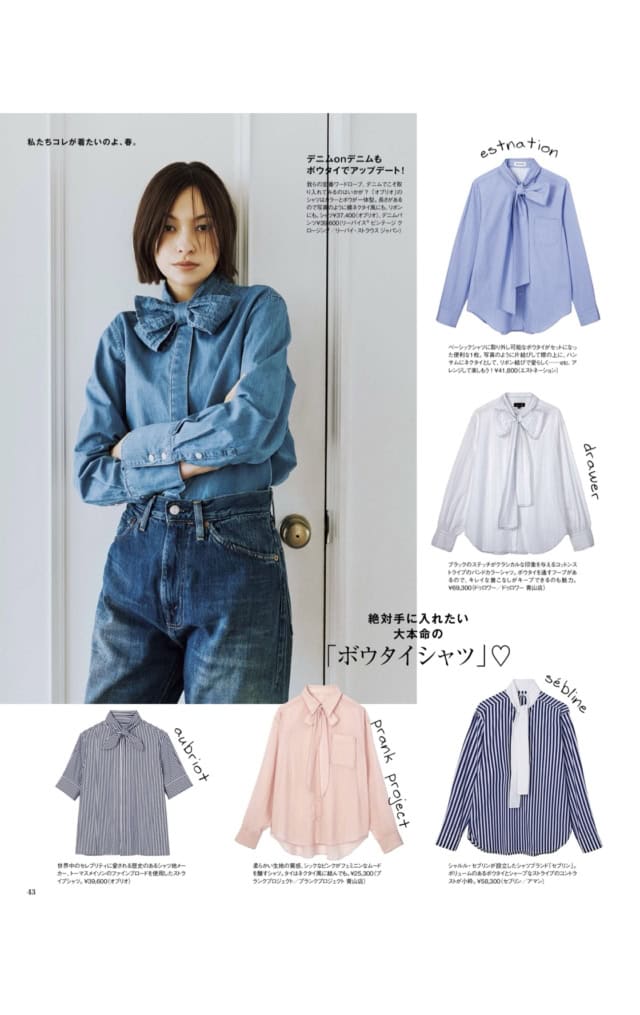 なかでも筆者のハートにジャストミートしたのが、巻頭特集のPART2「今季一番着たいのは、断然シャツなのです」の「絶対に手に入れたい大本命のボウタイシャツ♡」で紹介されていた、【オブリオ】のボウタイシャツです。コレがまた最高で、じつは2着買いしちゃったんです。今回はその魅力を思う存分語っていこうと思うので、しばしお付き合いいただければと! ちなみにオトナミューズでは、編集部や関係者が自分たちで掲載したり紹介したアイテムを自腹で買ってしまうことを「おのれ買い」と呼んでいるそうです。