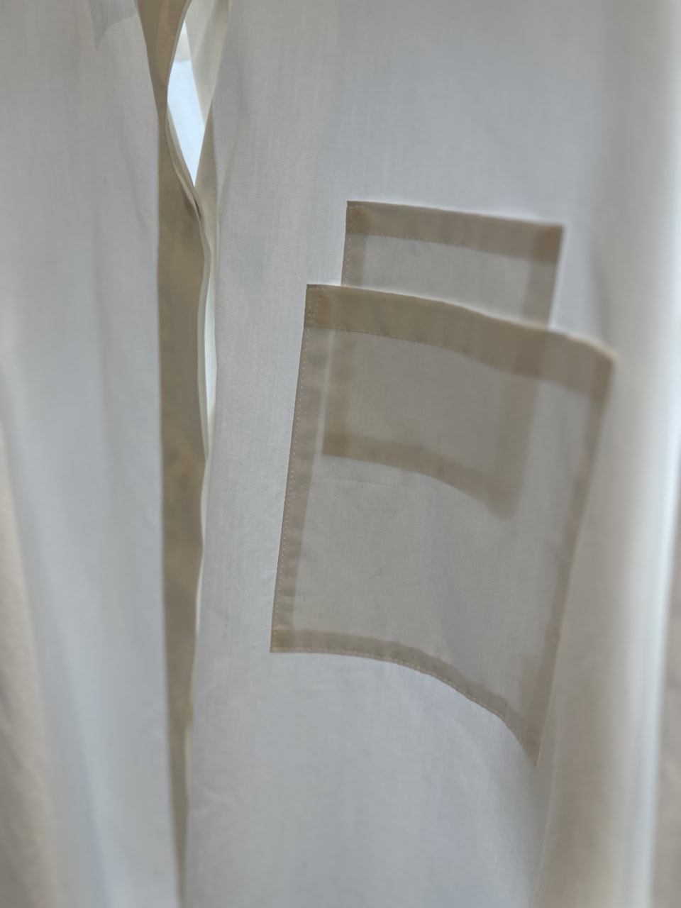 内側にもコンパクトなポケットを配してダブル胸ポケットに。共地なので主張は控えめですが、さりげないアクセントになってくれます