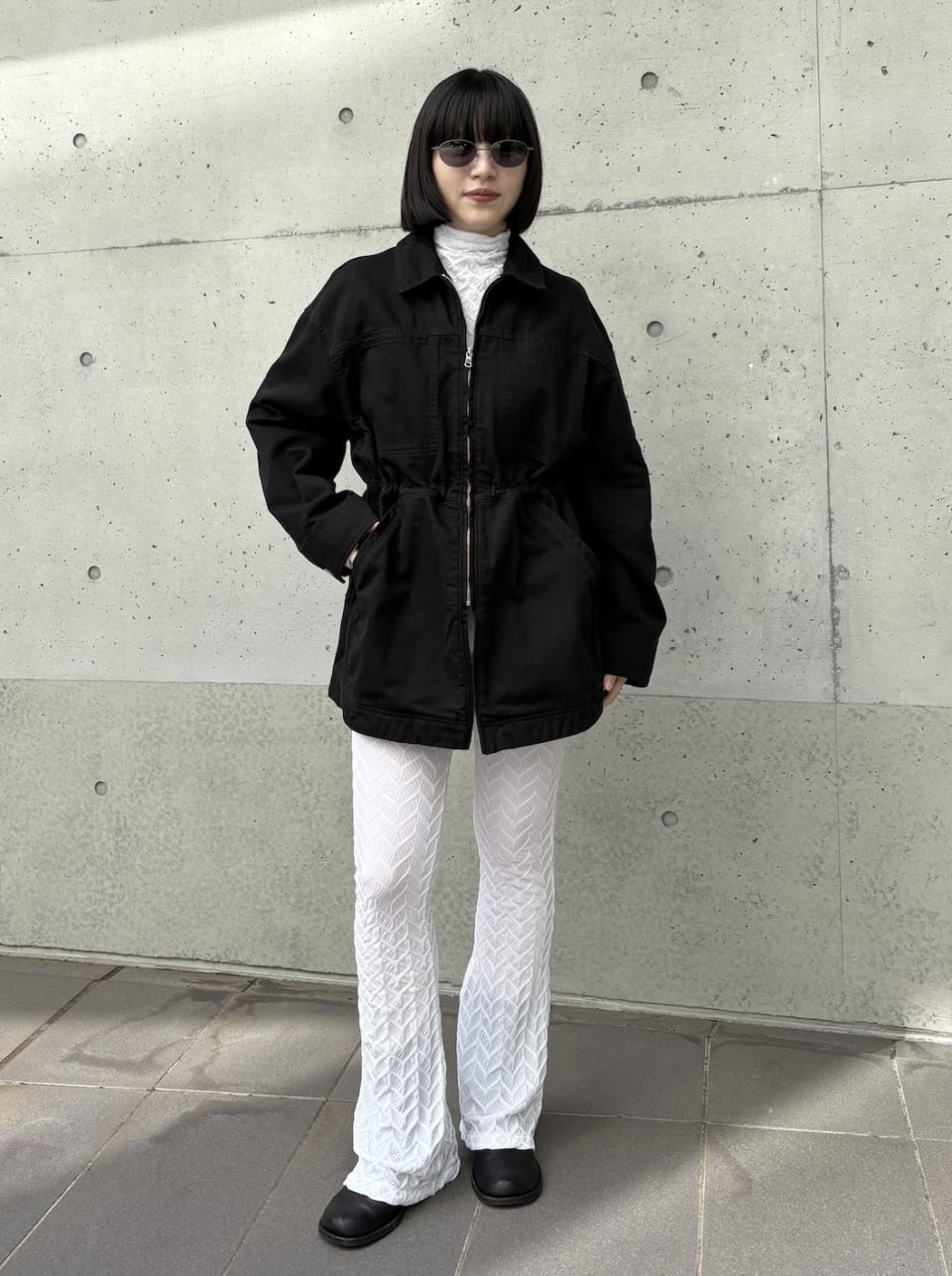 アウターの下は「オールホワイト」でモード見せ