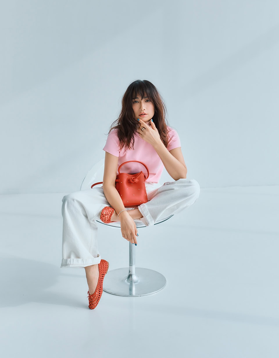 今シーズンのトレンドを象徴するパウダーピンクと赤。今季は存在感のある色と色を大胆に掛け合わせるのが、気分も洒落感もグッと引き上げてくれる鍵に。バッグや足元など少量できかせられる小物なら、配色スタイリングも途端にイージーに。クリーンなホワイトボトムが、主張のあるカラーコンビネーションにちょうどいいヌケ感を与えてくれます。