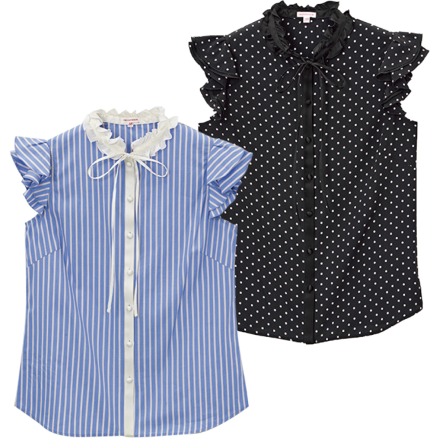 デニムにさらりと合わせたいストライプブラウスも、ドレステリアの手に掛かればこんなにデザイン性豊かに。シーズンムードたっぷりの透け感ある素材に、ドロップショルダーからのボリューム袖というリラクシーな掛け合わせ。首元を飾るフリルのスタンドカラーでドレッシー要素も忘れずに。
