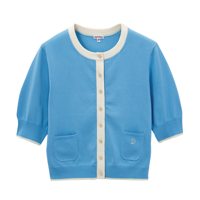 今季注目のナチュラルカラーを意識した鮮やかなグリーンに、白の配色が映えるカーディガン。メリハリのある色使いながらも上品なデザインで、お仕事シーンにもフィットしそう。小振りなポケットにはドレステリアのD刺繍が。二の腕をしなやかに見せる、袖口リブのハーフスリーブも高得点。