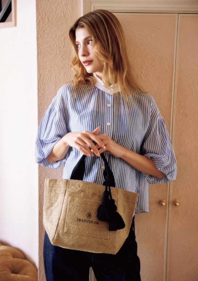 今季の「ドレステリア」は、ボ-ホーシックな雰囲気を持つ街、パリ東部19区に暮らす女性のワードローブをイメージ。フレンチエッセンス薫る新作たちを、欧州にルーツを持つマギーがムードたっぷりに着こなしてくれました。