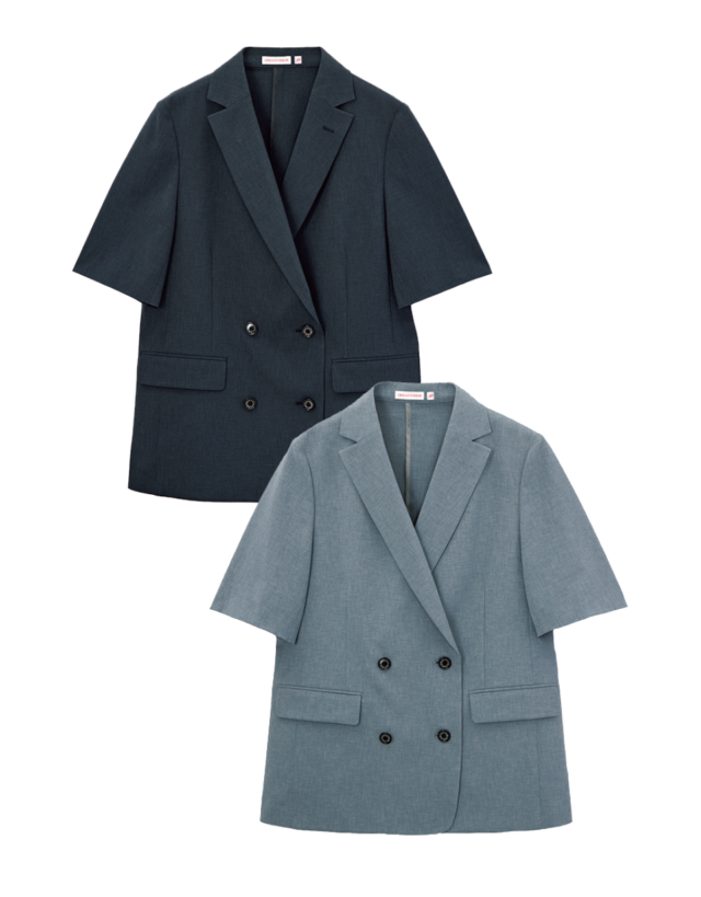ハーフスリーブのラフなテンションやゆったりめのサイズ感も、春夏のヌケ感あるテーラリングルックの代表格。しかもこちらは上下共にウォッシャブルで扱いやすいのが魅力。インにボーダーを入れることで、トレンド要素のひとつであるカラーブロッキングをイージーに取り入れてみるのも手。