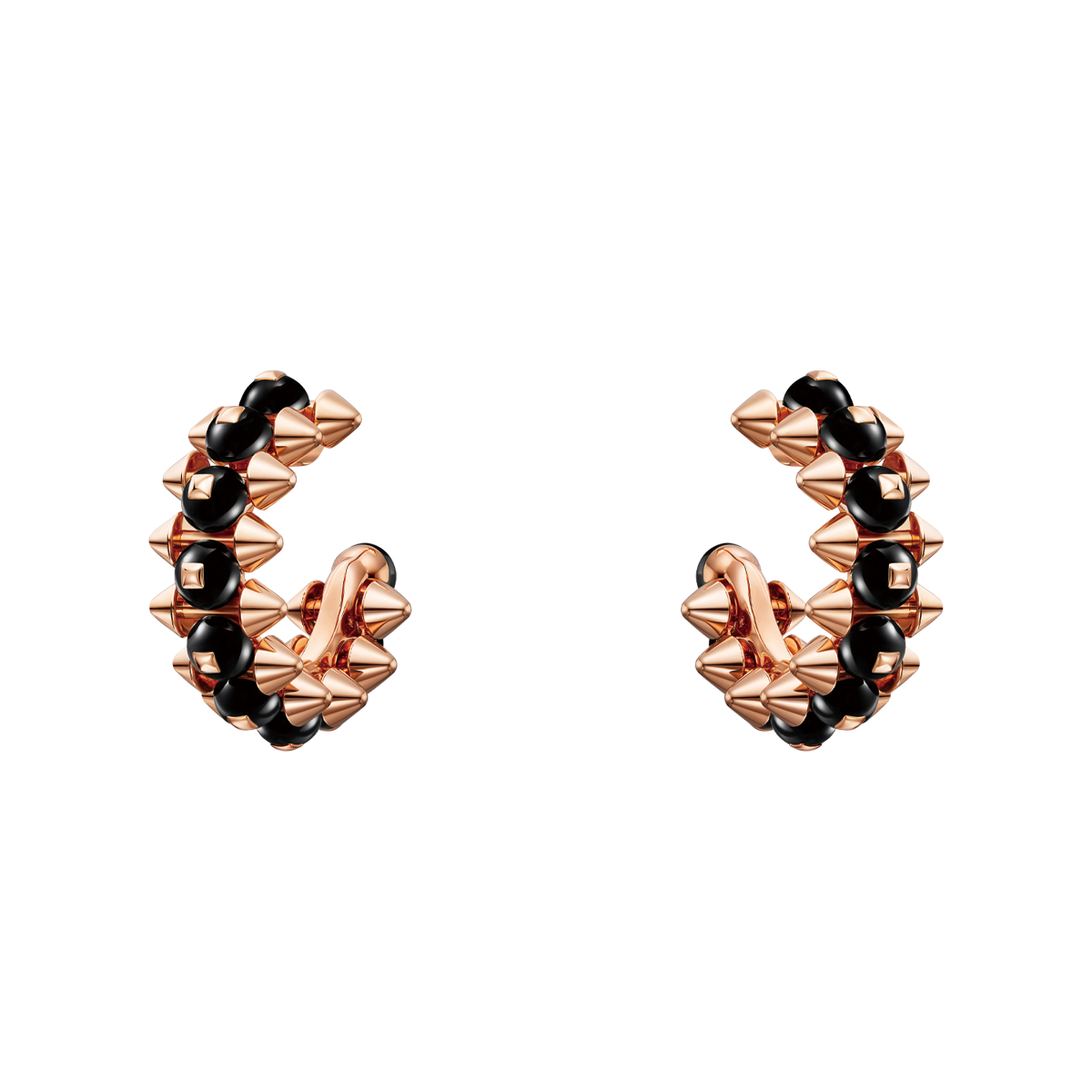 • 上から:「クラッシュ ドゥ カルティエ」リング[YG]¥792,000、同 イヤリング[PG×オニキス]¥1,346,400、同ネックレス[PG×レッドアゲート]¥957,000、同 ネックレス[PG×グリーンアゲート]¥957,000、同 ネックレス[PG×ピンクカルセドニー]¥957,000(全てカルティエ/カルティエ カスタマー サービスセンター)