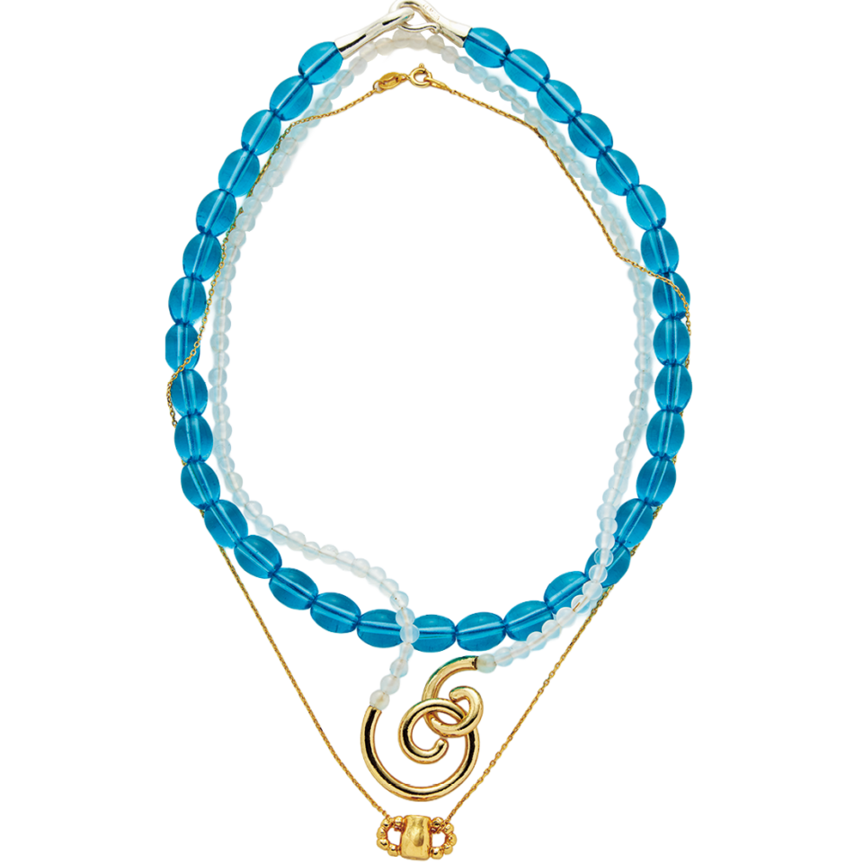 外側からブルーネックレス¥35,200、ホワイトネックレス¥49,500、ゴールドネックレス¥22,000(全てラ・ムーン/トートロジー)