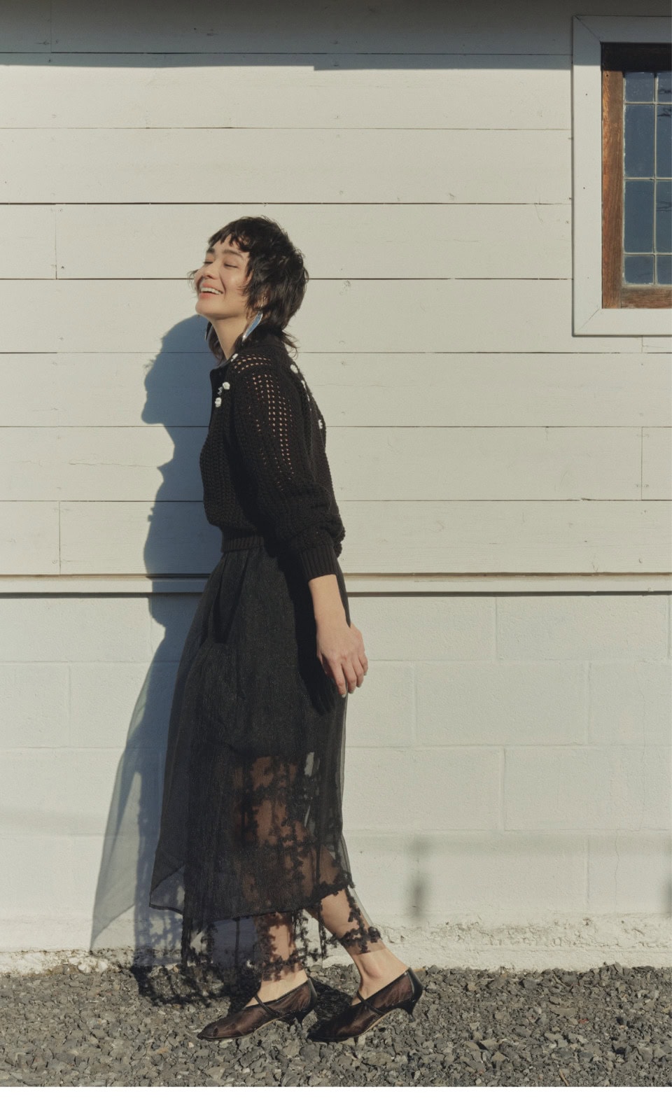 レース&クロシェから透ける肌が軽やかなオールブラック