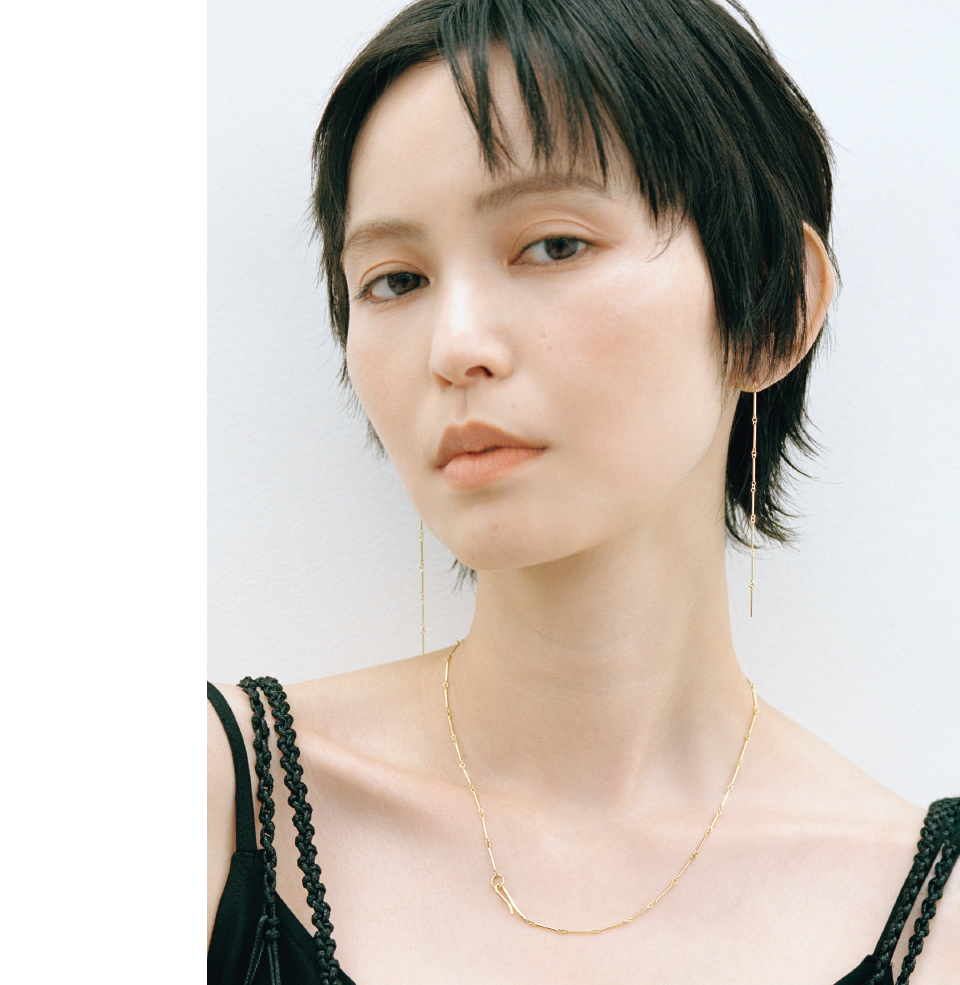 削ぎ落とされた極細のK18YGパーツをライン状に連ねたスタイリッシュなスキニーコレクション。留め具部分もパーツのように見せてしまいたい、全方位魅力的な存在。