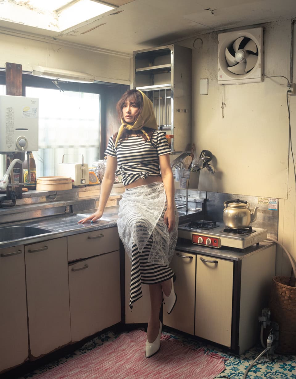 シアーにレース、派手色T。写真家・横浪 修が描く、レトロな世界の佐田真由美Tシャツルック4選