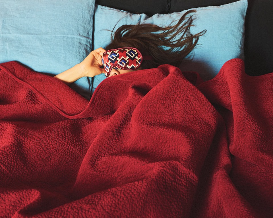 Mericiのピローケース、GUCCIのアイマスク、イギリスのコンランショップで購入したベッドカバーは風間さん私物