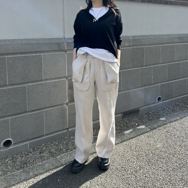 セーラーパンツをひっくり返したようなディテールをポケット部分に施し、パイピングは宇宙船から飛び出ているチューブをイメージしているそう。ポケットも大きめで、装飾が少ない洋服を選びがちな私にとって、ほどよいアクセントになっています。