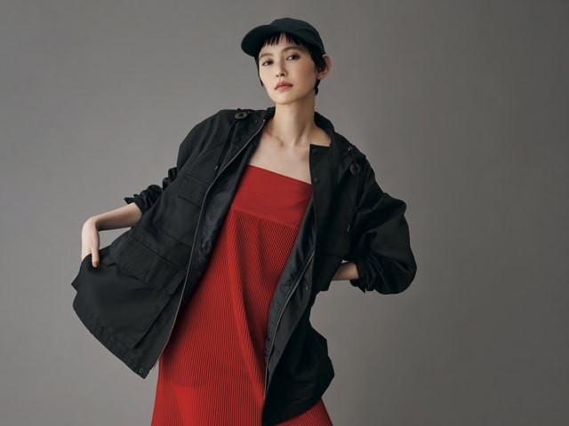 ジャケット¥13,200(コールマン/コールマン カスタマーサービス)、ドレス¥30,800(ハイク/ボウルズ)、キャップ¥12,100(アンデコレイテッド)、ブーツ¥28,600(ILSE JACOBSEN/メイデンカンパニー)