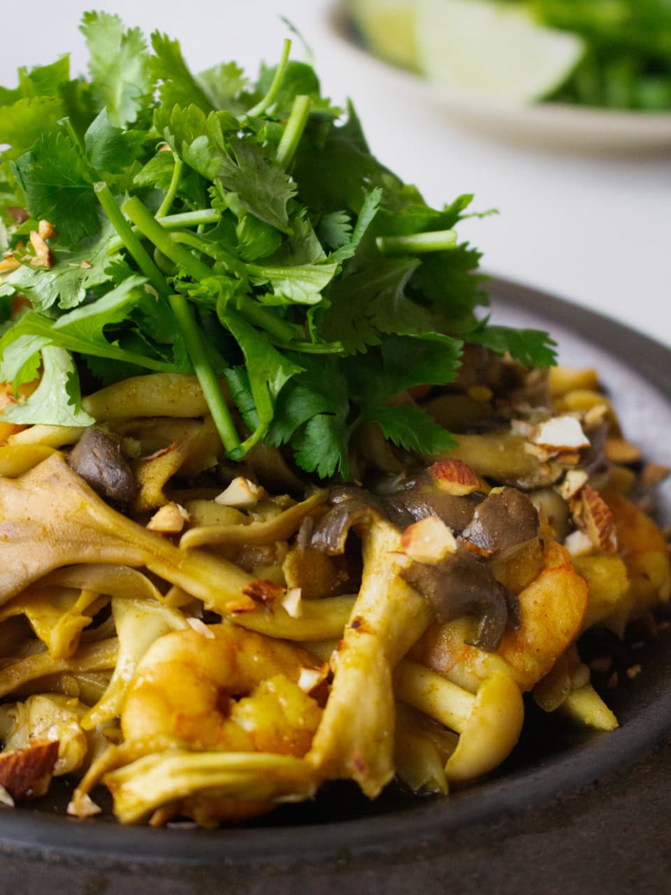 舞茸・しめじなど旬のきのこをたっぷり使い、さらに肌のうるおいを守る良質なたんぱく質を含むえびをプラス。スパイスの温め効果と、アーモンドの良質な脂質で、内側からうるおいましょう!