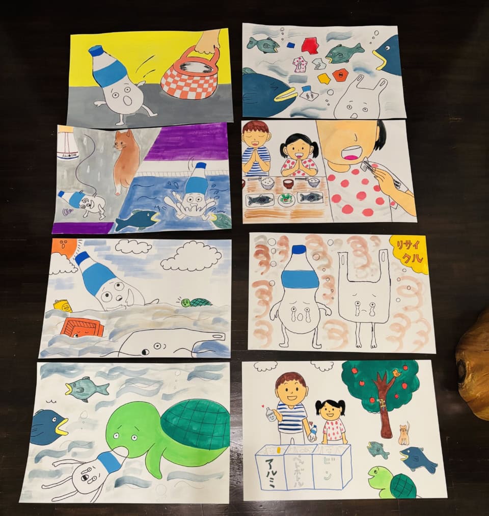 チーム【レインボー】の力作紙しばいはこちら! 使用後のペットボトル君が海洋投棄されてしまいます。