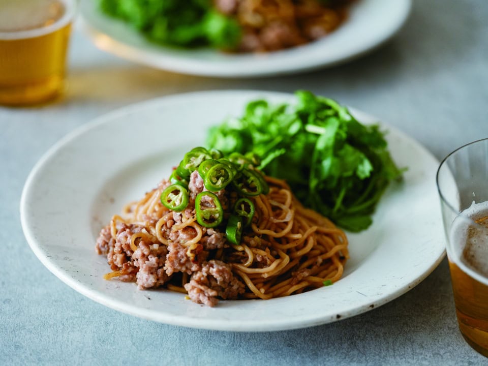 『ひき肉とパクチーの青唐ナンプラー焼きそば』