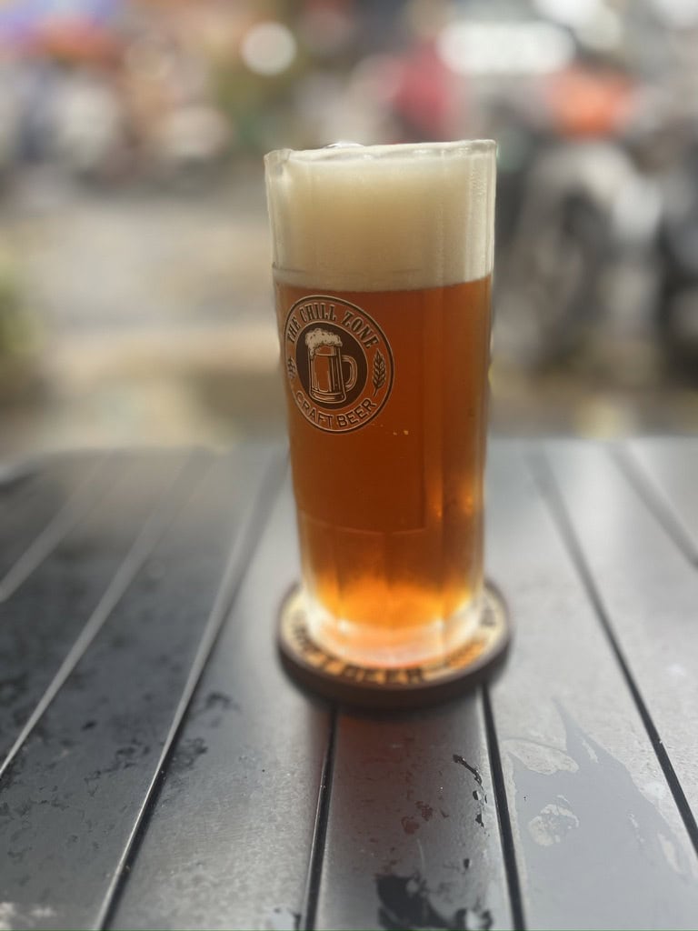 これが筆者がオーダーした「TRIPBLE IPA」。ベトナムの街角でよく見かける、低いテーブル&椅子で飲むビールも最高でした!