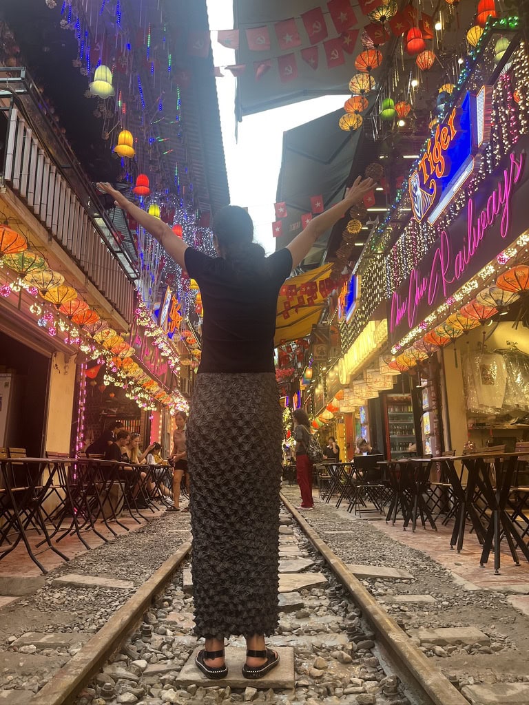 ハノイで絶対に訪れたかった「トレインストリート」。ここは狭い路地を電車が通過して、日本では体験できないスリルと異国感を楽しむことができるんです。そもそもこの鉄道は、20世紀初頭のフランスの植民地時代に建設され、ハノイの発展と共に狭い路地になったそう。「トレインストリート」はハノイ駅に近いレ・ズアン通りにもうひとつあり、こちらはカフェの数は少ないもののローカル感が強いそう。「地元の暮らしも見てみたい! 」という人には、ぜひレ・ズアン通りの「トレインストリート」に。
