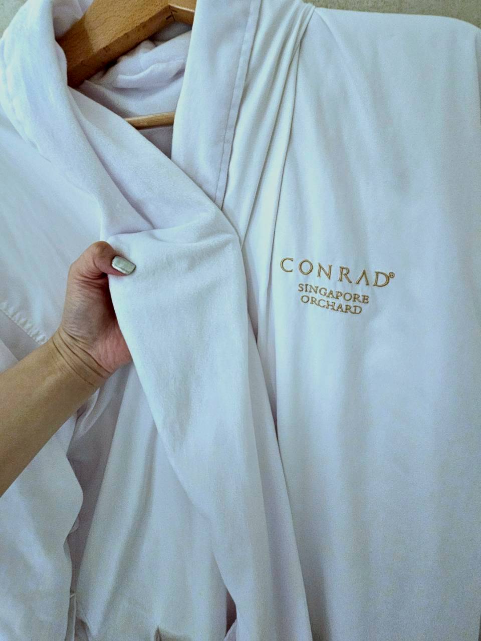 そして、私実は20代のころからバリなどのコンラッドホテルの香りやアメニティがことごとくツボで毎回「売ってたら買って帰る」と思うもの満載なんですが、今回はコレでした。バスローブです。外側はさらっとした触り心地で、内側はすべすべのタオル地で「パジャマ持ってくる必要なかったじゃん!」状態。お願いだからコッソリ売ってくれないかなと、今も思っています。これで寝てはいませんが「できる限り長い時間着ておきたい」心地よさでした。ぜひ泊まって体感してください。