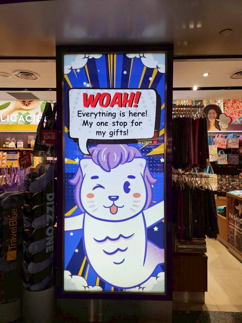 空港内のスーベニールショップではこれでもかってほどマーライオンプリントのTシャツなどが売られています。