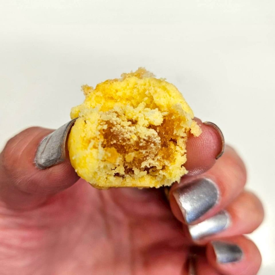中のパイナップルのフィリングが甘過ぎない、というか、酸味がすごいぞ! クッキー部分はバターの風味がしっかりあって、とても贅沢なボールです。なんじゃこりゃ! 超ウマいぞ!
