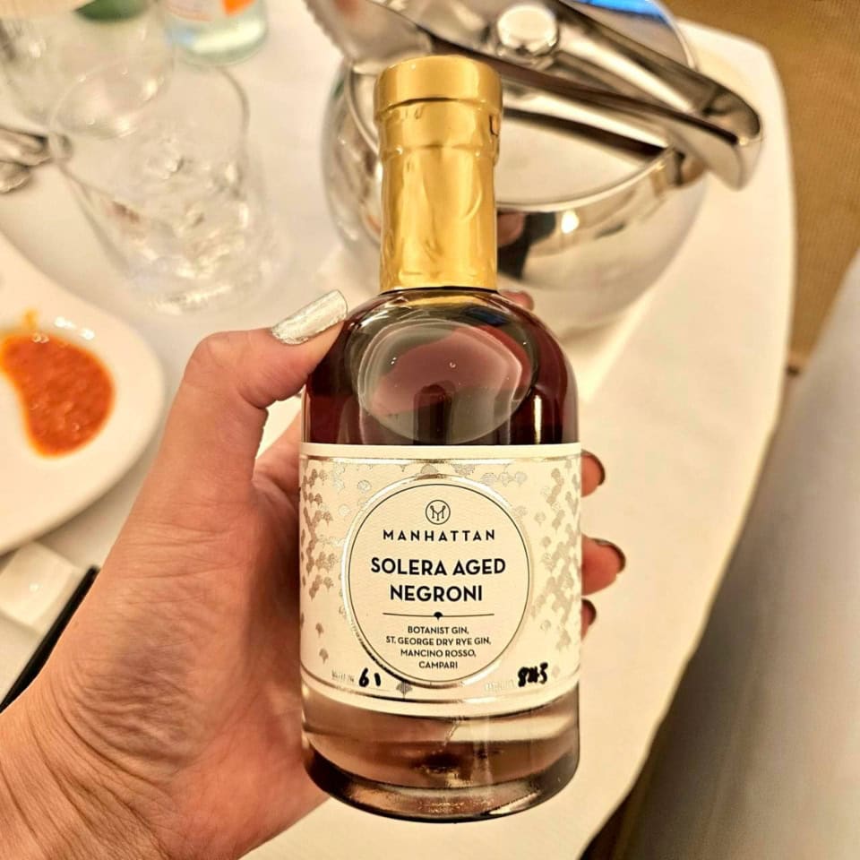 ちなみに私はSOLERA-AGED NEGRONIという別の樽熟成カクテルもいただいてみました。こちらはジンベースで、カンパリなんかも入っています。シグネチャーカクテルのMANHATTANとのかすかな違いを比較して楽しむのにもオススメ。