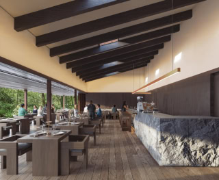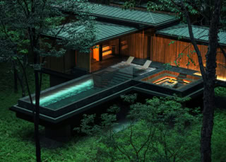 東京都心から約95分。深い森に佇む「NOT A HOTEL KITAKARUIZAWA」に位置する「IRORI」は、ガラス張りの開放感と木素材の絶妙なバランスが豊かな自然環境との調和をつくり出す、唯一無二なデザインが特徴。2024年7月の開業以来、訪れる人々を魅了し続けています。