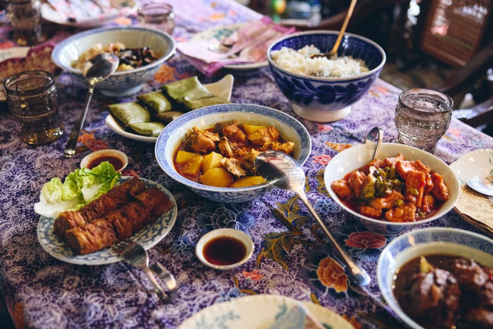 ブルーピーで色をつけたごはんに、各種料理を盛りつけてモリモリ食べるものだそう。食べ慣れないスパイスや調味料の組み合わせなどに驚きつつも、味つけはアジア料理なので日本人にも受け入れやすく、アルビンさんファミリーはたぶんお料理上手なんでしょうね、まあそれはそれは美味! お肉などの食材がいちいち「イイもの使ってるな」って感じなんです。