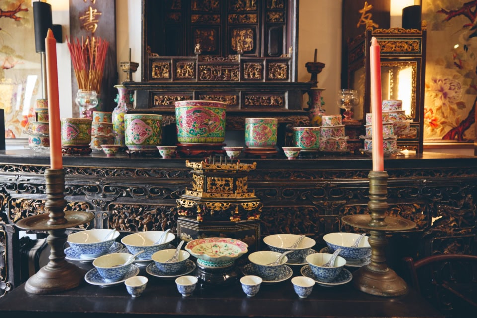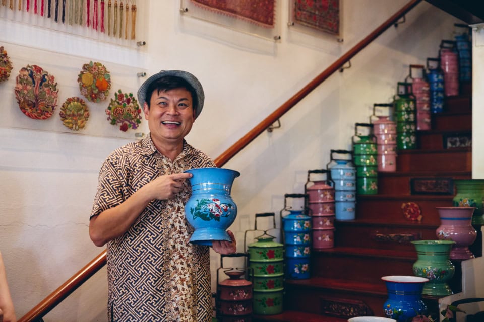 というわけで『ザ・インタン』のオーナー、アルビン・ヤップさんも中国系の方。若かりしころ自身のルーツを探究したくなって、プラナカン文化と言えるシューズや宝飾品、食器などあらゆるものをガレージセールなどで買い集め、自宅に並べていたら友人たちが「ちょっと、あなたのコレクション見せてよ」と訪れることが増え、別にいいよとウェルカムしていたらある日突然、噂を聞きつけた政府の役人が訪れて「すごいコレクションだねえ。ここを美術館にしたらどうかな?」と言われたんだそう。そんなことってあるんですね。