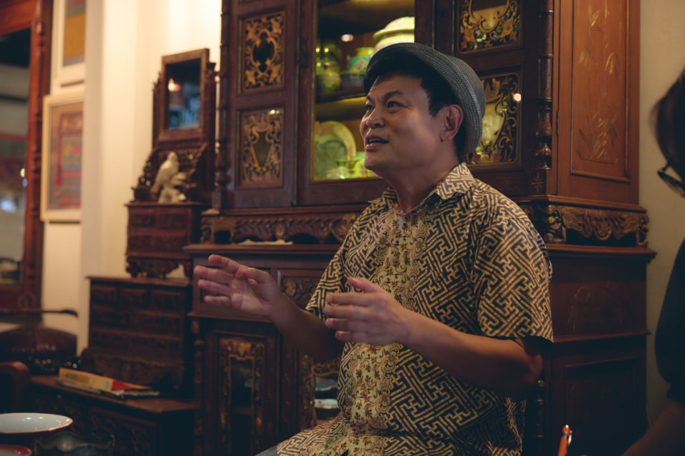 身振り手振りを加えてプラナカンについて教えてくれたアルビンさん。ピアノも弾けます。