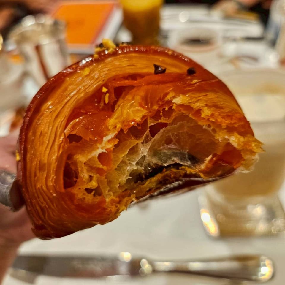 あまり甘いものを積極的にいただくタイプではないのですが、コーヒーとオレンジ味のチョコレートなどの組み合わせは嫌いではないので、こちらのクロワッサンを頼んでみました。
