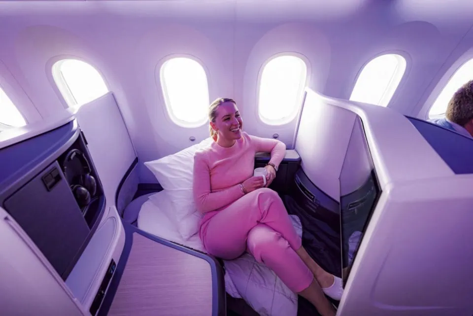 ビジネス・プレミアでは座席のレイアウトを一新。ラグジュアリーなフルフラットベッド、ニュージーランドの味覚を盛り込んだ食事など、究極に贅沢な空の旅を堪能できます。