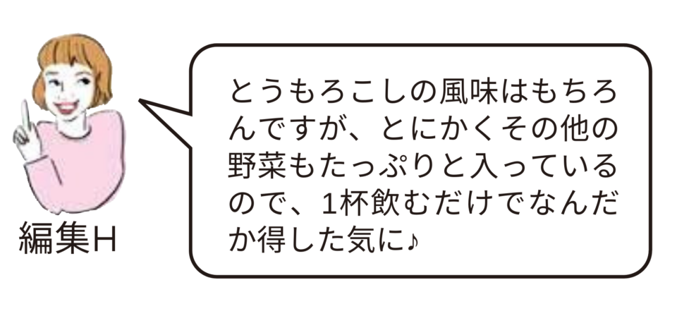 たっぷりのとうもろこしに、34種類の野菜ペーストを合わせた贅沢なポタージュ。トロッと濃厚なスープは1杯で十分な満足感。¥538(紀ノ国屋)