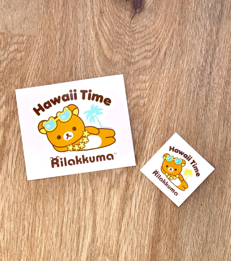 リラックマのステッカー〈大〉$4、〈小〉$3(Moni Honoluluにて販売)