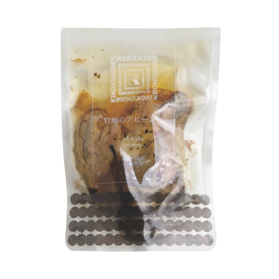 瀬戸内海で水揚げされた牡蠣を風味豊かなグレープシードオ イルで煮たアヒージョ。ワインやビールのおつまみに最適。¥579(紀ノ国屋)