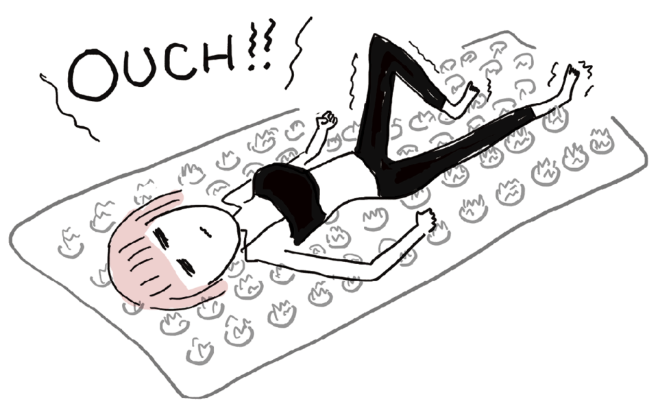 「この上で寝られる時間がだんだんのびていくのも快感」(H)。インドに伝わる指圧と鍼治療の原理をもとに、スウェーデンの僧侶が開発。血行を促進し、緊張した筋肉をほぐす。