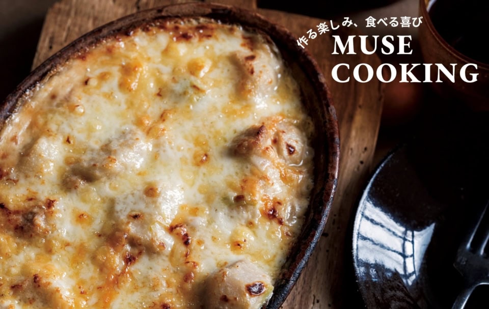 小麦粉不要。牛乳をしっかり煮詰めることと里いもの粘りで、濃厚なグラタンに。みそは香りが飛ばないよう、最後にプラス。