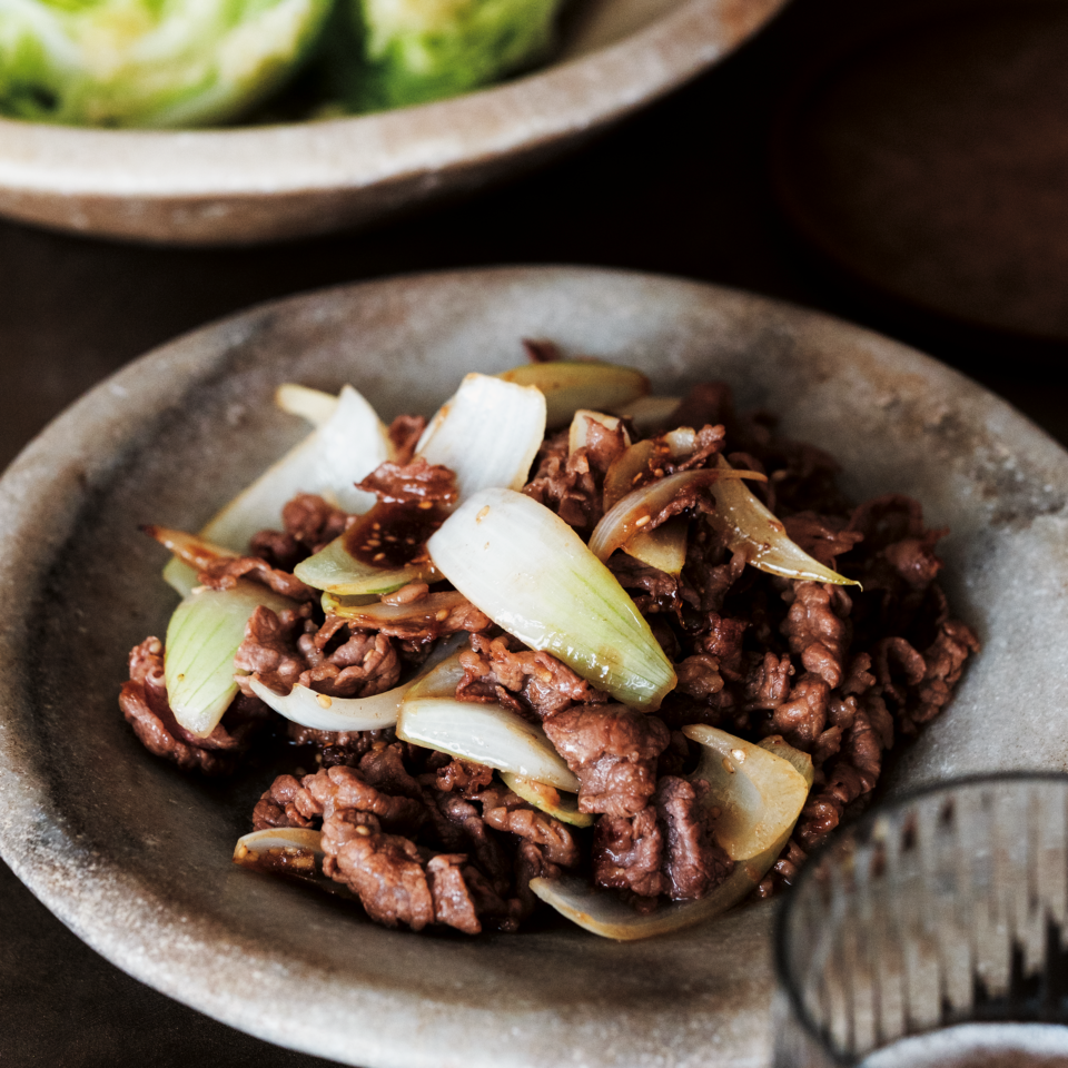 ③ ❷のフライパンを再度中火で熱し、牛肉を入れて色が変わるまで炒める。玉ねぎを戻し入れ、香味だれを加えてからめる。